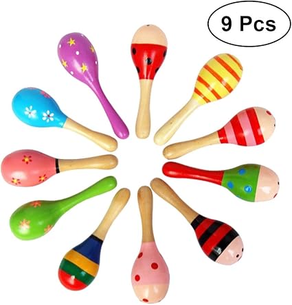 Amazon Com 9 Piezas Divertidas Para Ninos De Madera Maracas Rattle Shakers Musical Educational Toys Patron Al Azar Arte Manualidades Y Costura