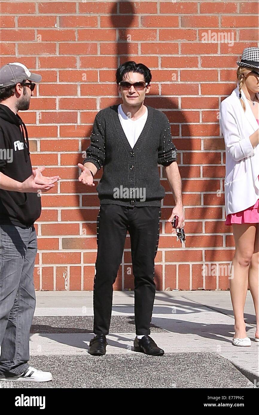 Corey Feldman Vestidos Al Estilo De Michael Jackson Con Zapatos Negros Calcetines Blancos Y Un Cardigan Con Clavos Disfruta De Un Dia Con Su Novia Y Un Amigo En Beverly Hills Con