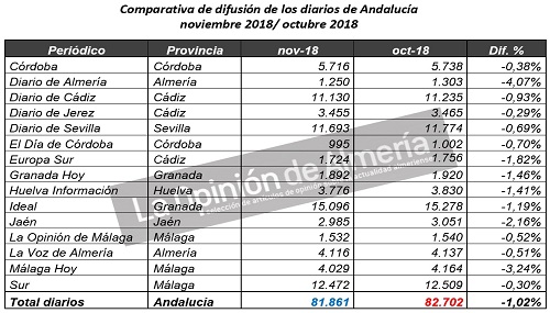 La Opinion De Almeria Ojd Noviembre 18 Diario De Almeria Solo Vende 1 250 Ejemplares