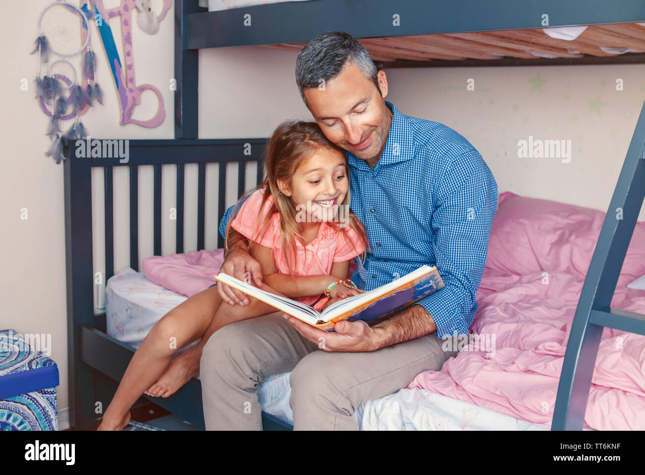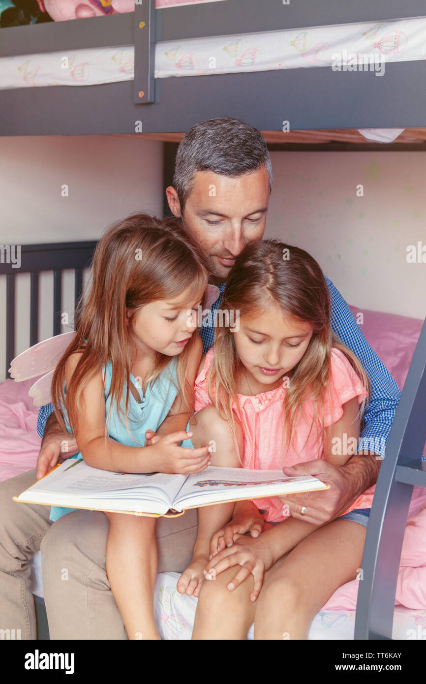 Imagen De Padres E Hijas Libro De Lectura Al Acostarse Fotografia De Stock