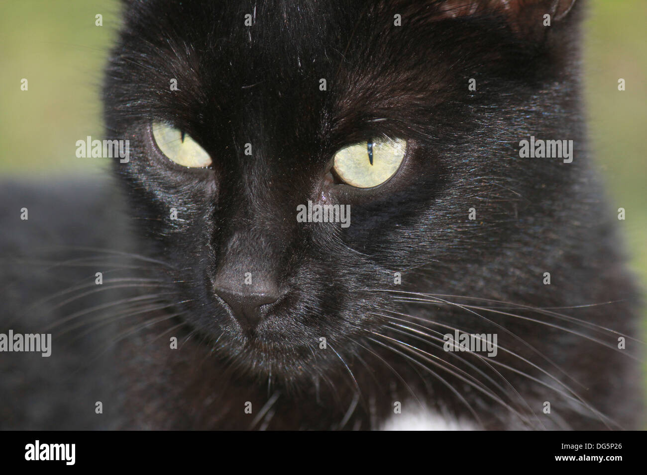Close Up De Gato Negro De Ojos Amarillos Fotografia De Stock Alamy