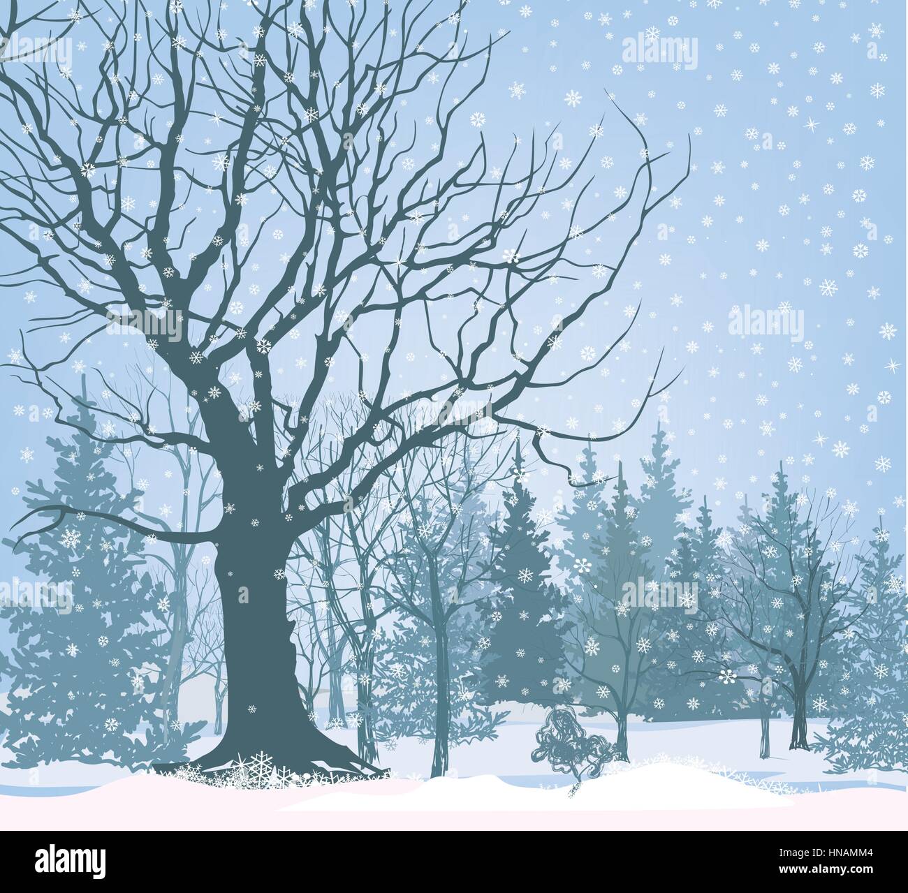 Navidad Paisaje De Nieve Bosque Nevado Papel Tapiz De Fondo Arbol Sin Hojas Sobre La Nieve Jardin De Invierno Imagen Vector De Stock Alamy