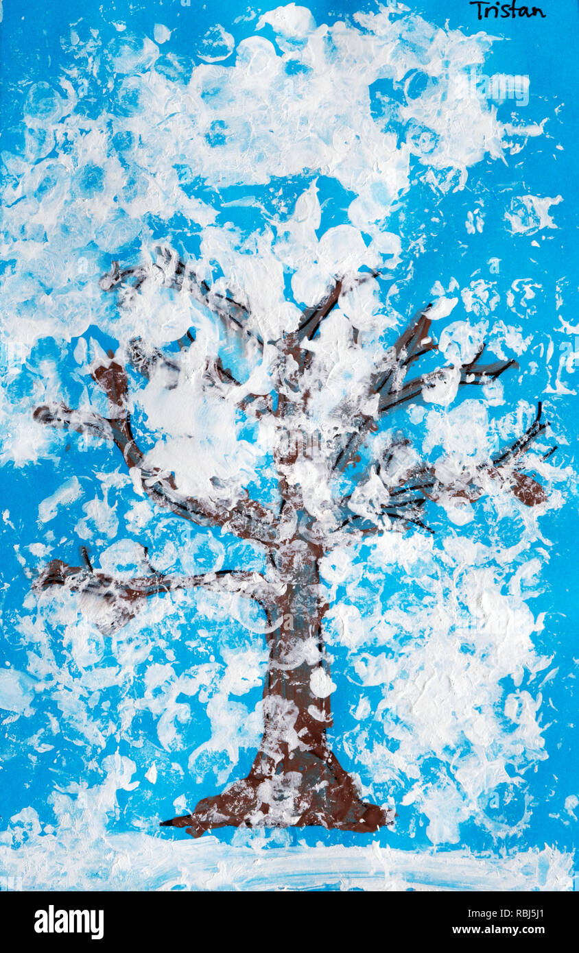Un Nino De 5 Anos El Dibujo De Un Arbol Nevado Fotografia De Stock Alamy