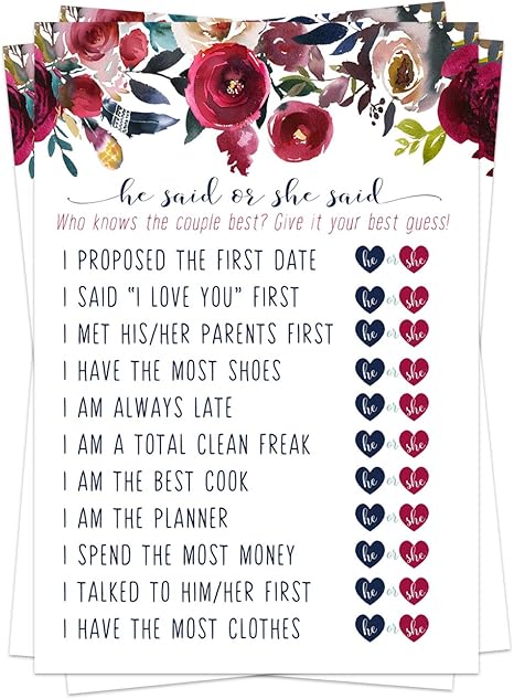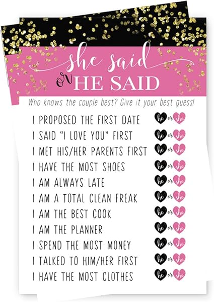 Hermosos Juegos De Ducha Para Novia He Said She Said Set De 25 Tarjetas Rosa Y Oro Amazon Es Hogar