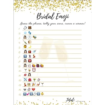 Amazon Com Juegos De Ducha De Novia Paquete De 25 Unidades Emoji Pictionary Games Para Compromiso Boda Y Despedida De Soltera Disenos Elegantes Oro Y Floral Para Adultos Co Ed Hombres Mujeres Parejas