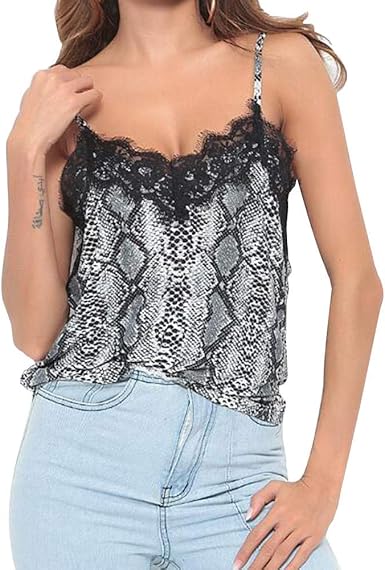 Camiseta Tirantes Mujer Encaje Encaje Honda Sexy Serpiente Patron Chaleco Femenino Color De La Imagen S Amazon Es Ropa Y Accesorios