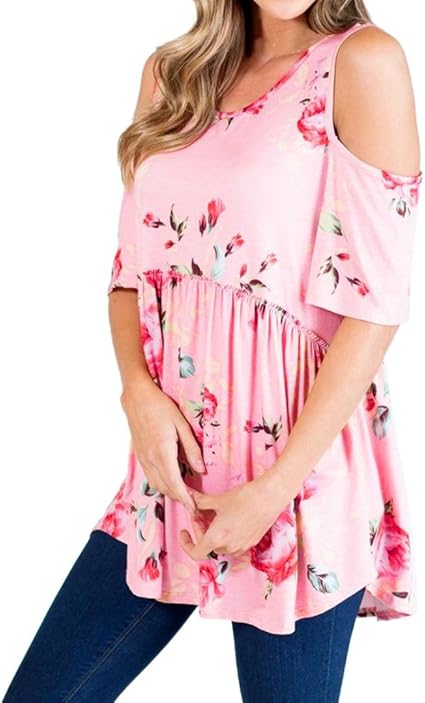 Blusa Mujer Longra Mujer Camiseta Floral Estampado Dos Nu Tank Tops Mujer Mango Corto Sin Tirantes Vintage Bohemia Crop Top Mujer Decontractee Chic Blusa Encaje Verano Mode Rosa Rose M Asia M Eu S