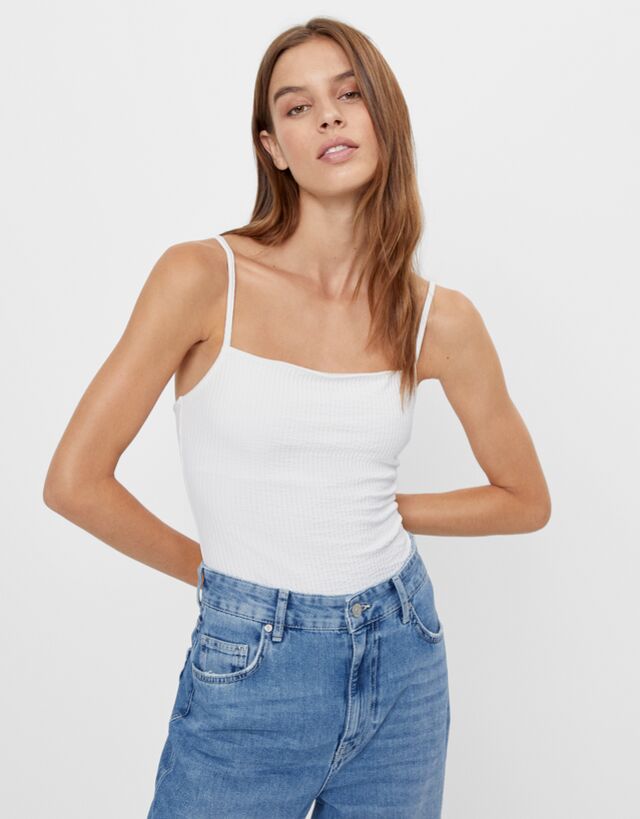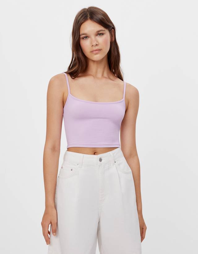 Top Cropped De Tirantes Camisetas Y Tops Mujer Bershka