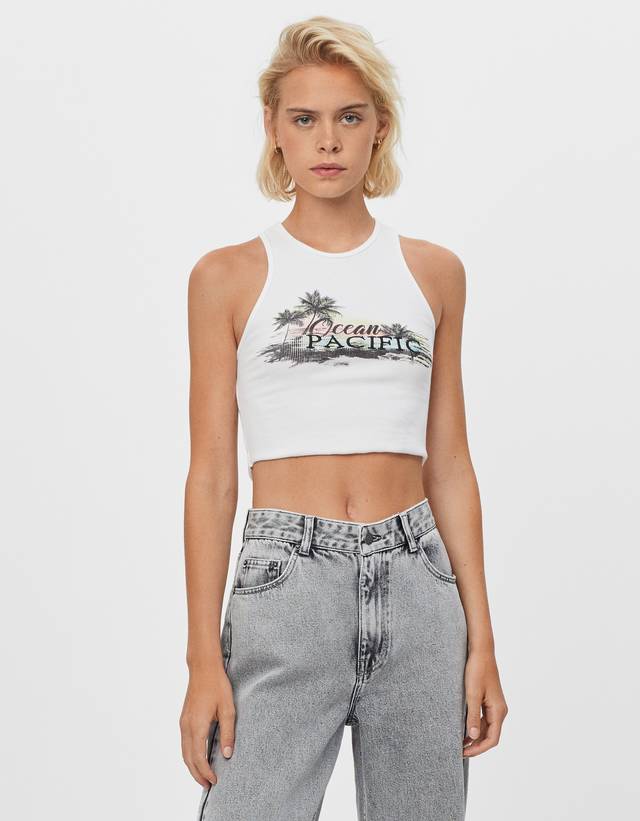 Top De Tirantes Con Estampado Camisetas Y Tops Mujer Bershka