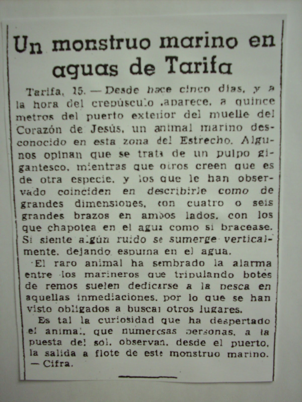Inexplicata The Journal Of Hispanic Ufology Spain A Sea Monster In Tarifa 1955