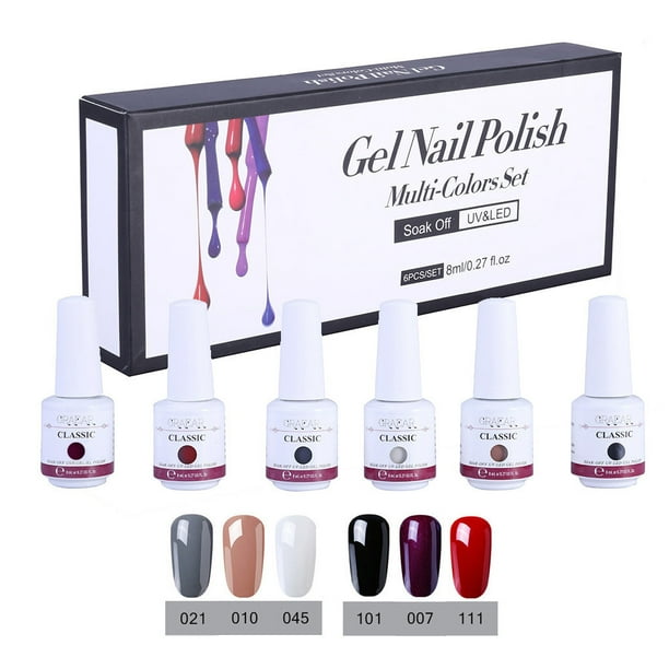 Gel Nail Polish Set Of 6 Uv Led Soak Off Classic Solid Color Gel Nail Kit 8ml Walmart Com Walmart Com