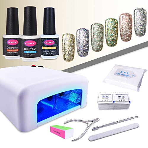 Clavuz 6pcs Soak Off Starry Gel Nail Polish Uv Led Glitter Nail Lacquer Top And Base Coat Set 36w Uv Nail Lamp Manicure New Starter Nail Art Tool Kit Walmart Com