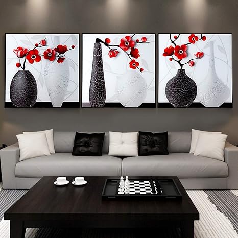 Hhgo 3 Piezas Cuadros De Juegos De Arte De Pared De Lienzo Floral Decoraciones De Murales Pared De Pintura De Cartel Moderno 3d Para Sala De Estar Habitacion Cocina Oficina Pasillo Amazon Es