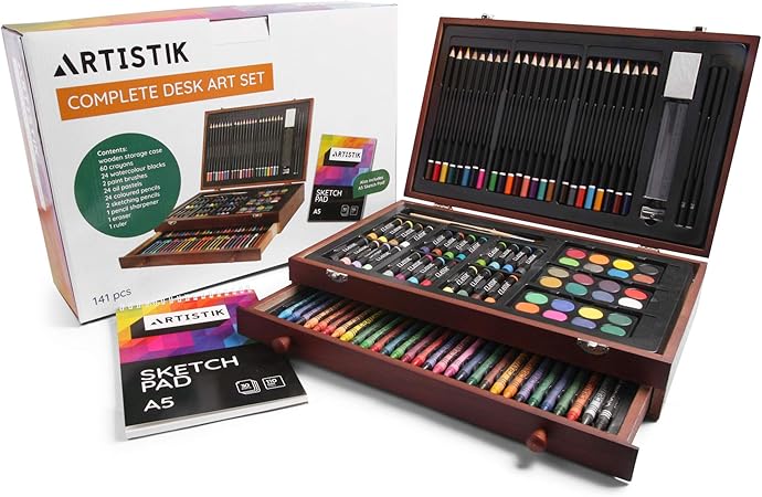 Juego De Arte De Lujo 141 Piezas De Pintura Profesional Boceto Y Dibujo Con Caja De Almacenamiento De Madera Y Bloc De Dibujo A5 Amazon Es Juguetes Y Juegos