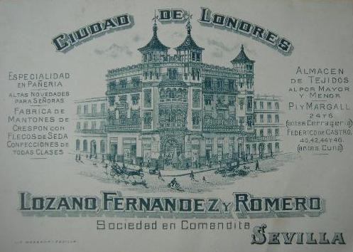El Kilo Sevillano Sl Telas Y Sedas (al Por Menor) Sevilla (Sevilla) Feria, 34 34 34 — El vídeo de su negocio aquí. Directorio de Tela en Sevilla capital 47 Empresas y servicios relacionados con Tela en Sevilla capital Busca Tela en Sevilla capital en PÁGINAS AMARILLAS. En las bodas de oro de su compañía, Alberto Palatchi ha comprado el edificio Ciudad de Londres de Sevilla, donde Pronovias abrirá el próximo otoño un nuevo establecimiento Ubicado en la calle Cuna, 30, esquina a Cerrajería, es obra del arquitecto sevillano José Espiau y MuñozDe estilo neomudéjar, está catalogado como patrimonio histórico artístico de la humanidad.