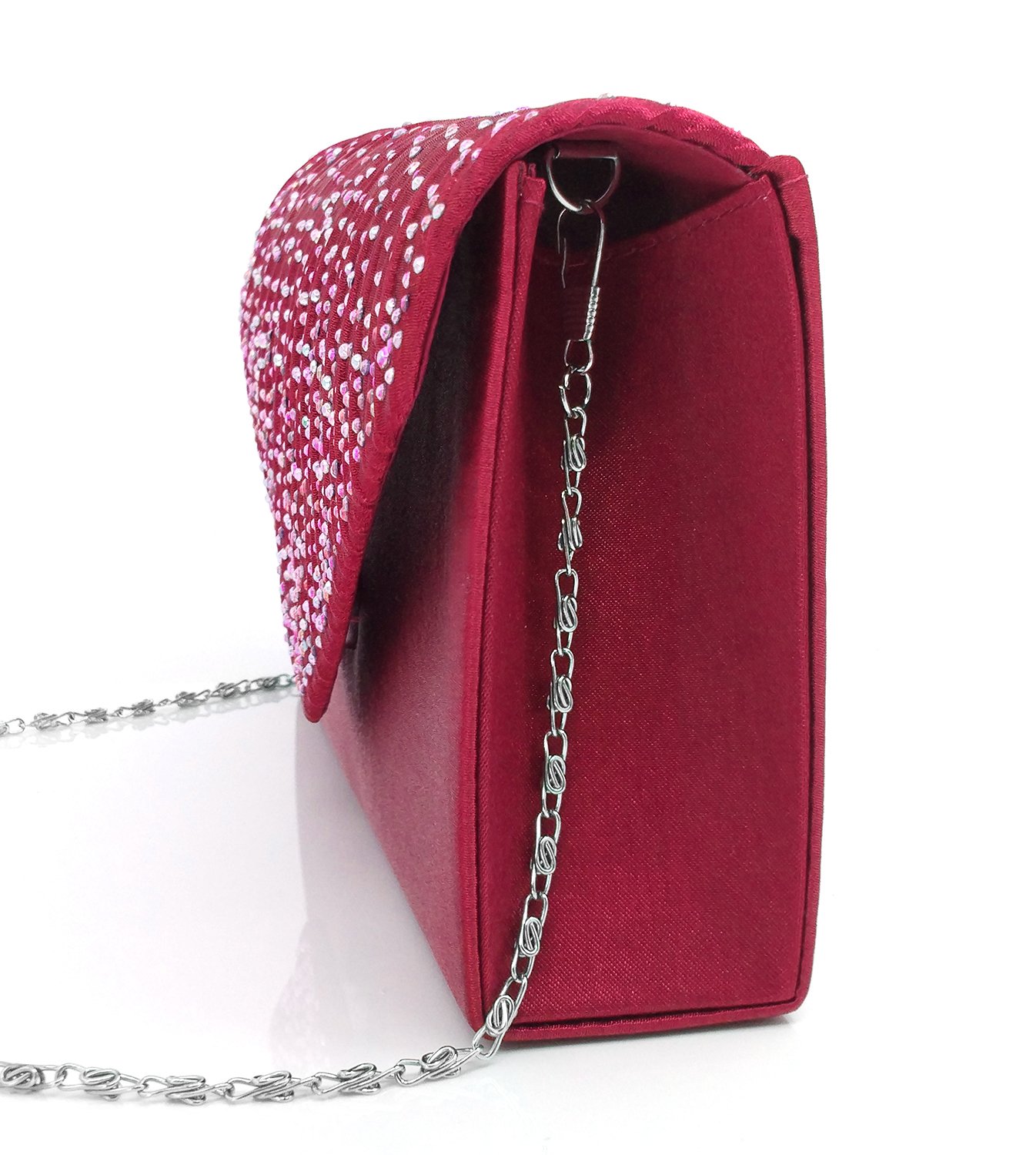Bolso Saten Para Mujer De Fiesta Boda Con Diamantes Y Cadena Larga Color Rojo Ebay
