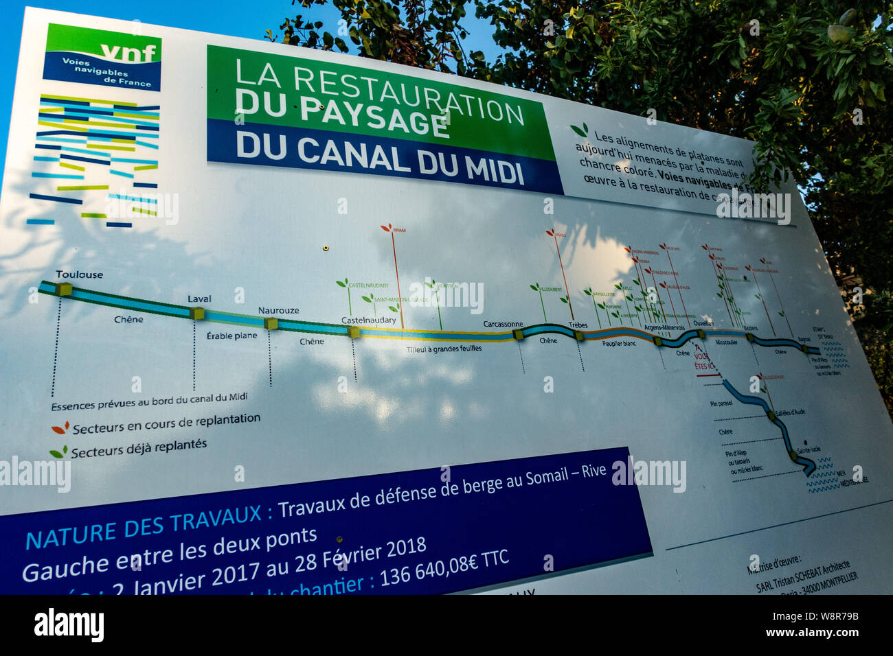 Public Information Plan Map Of Restoration Works Being Scheduled For Sections Of The Canal Du Midi France Stock Photo Alamy