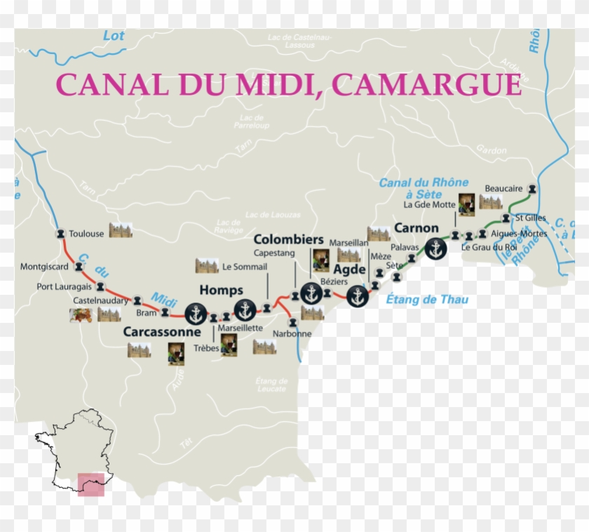 Canal Boating On The Canal Du Midi Map Clipart Pikpng