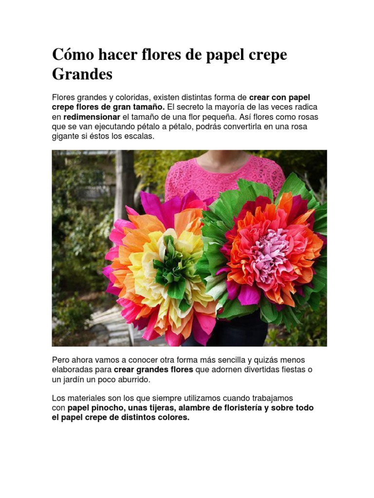 FLORES GIGANTES Y PEQUEÑAS con papel crepe, foami, papel de china, cartulinas 2/2. Las flores de gran tamaño son comúnmente utilizadas para obtener hermosas decoraciones de muros, columnas o paredes dentro de los festejos Comencemos esta lista de 15 diferentes modelos de flores de papel con estas flores gigantes de papel Mira cómo hacer flores de papel gigantes y podrás decorar cualquier espacio que desees Haz un montón de ellas para crear fondos de fotografías para. Encuentra Flores De Papel Crepe Grandes en MercadoLibrecommx!.