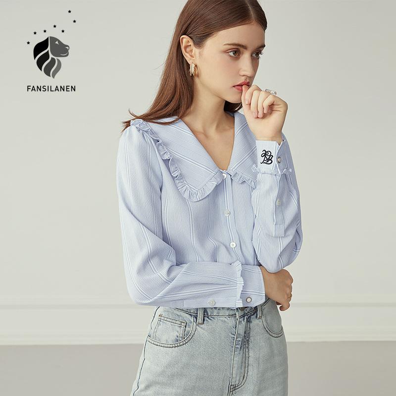 Fossen Blusas Para Mujer Verano Otono 19 Elegantes Version Coreana Camisa Blanca Suelta De Gran Tamano De Encaje Hueco Manga Larga Camisas Originales Para Oficina Fiesta Ocio Vacaciones Amazon Es Ropa