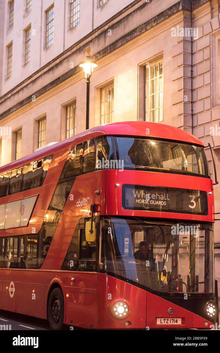 Front View Of Big Red Double Decker London Bus Parked In Bus Stand In London City Centre Street Evening Public Bus Transport Whitehall Uk Stock Photo Alamy