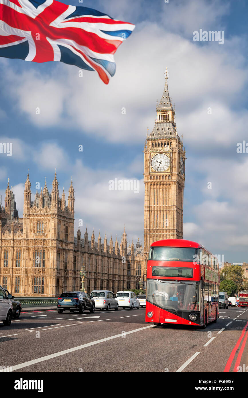 Red London Double Decker Bus And Big Ben Houses Of Parliament Stock Photo Alamy