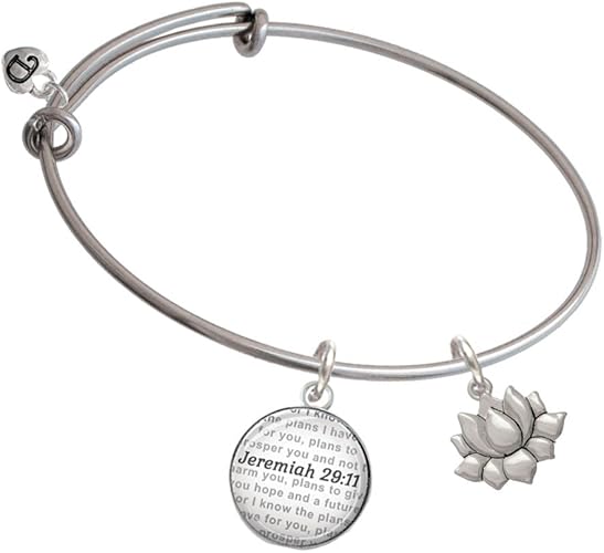 Pequena Flor De Loto Versiculo De La Biblia Jeremiah 29 11 Campana De Cristal Brazalete Pulsera Amazon Es Joyeria