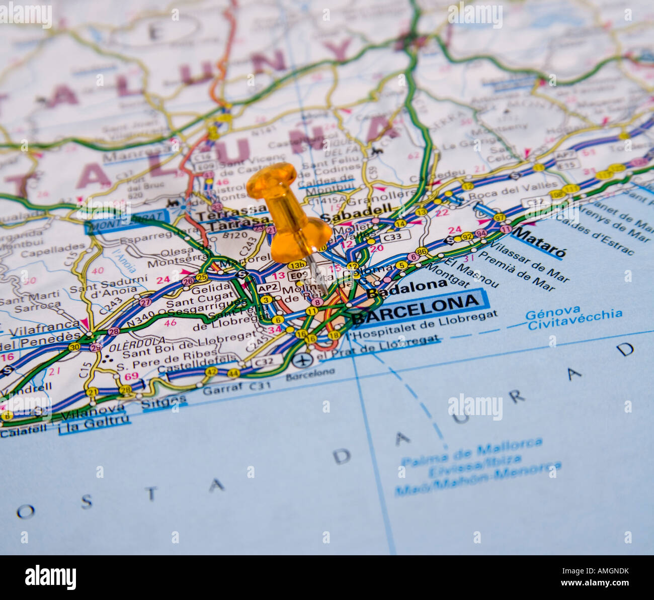 Mapa De La Ciudad De Barcelona Con El Pasador De Mapa Fotografia De Stock Alamy
