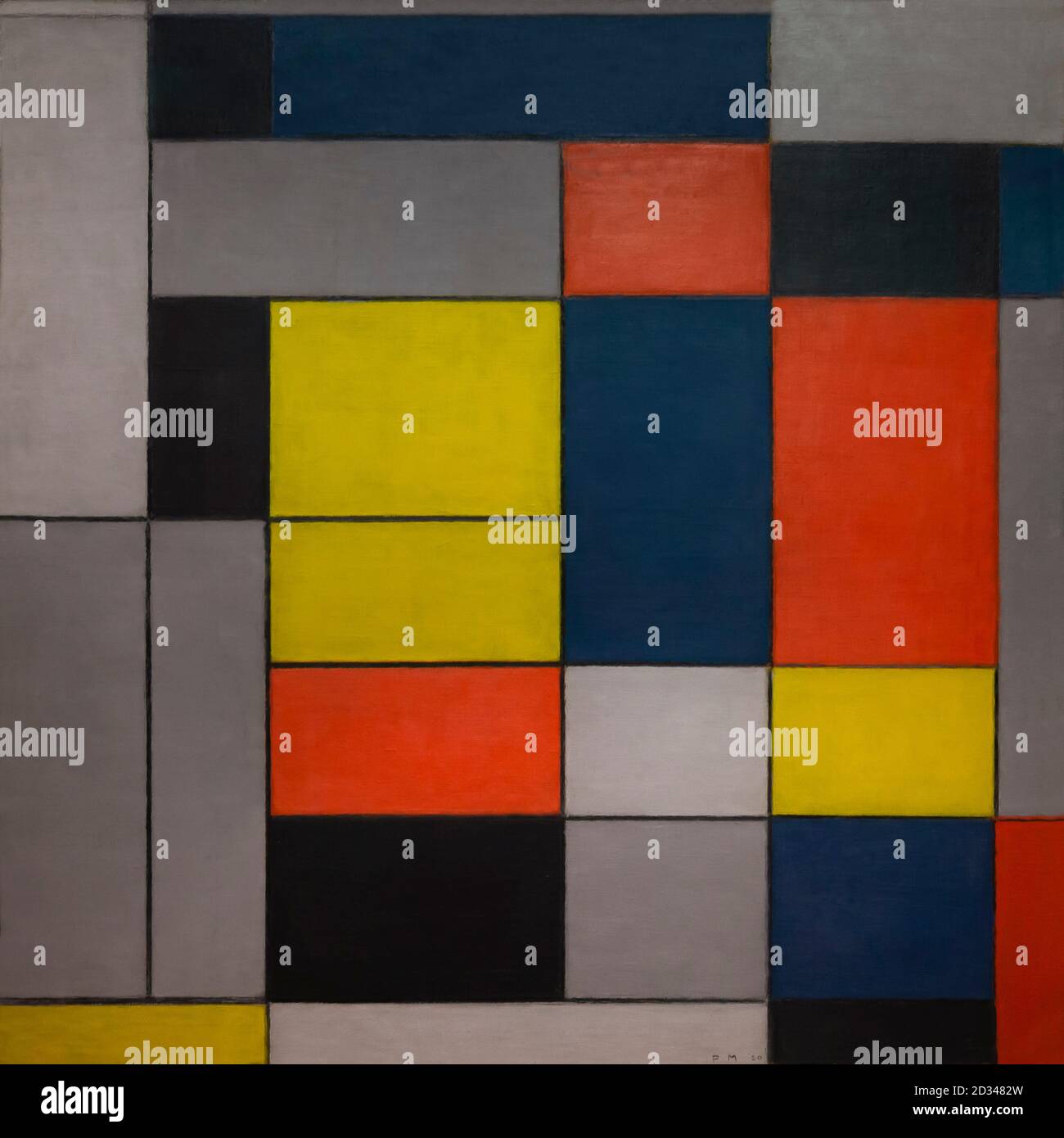 Piet Mondrian T Composition in Grey, Red, Yellow and Blue c197 Inscribed 'PM ' br and 'P MONDRIAN Composition N II' on stretcher Oil on canvas, 394 x 394 (1005 x 101) Purchased from the MarlboroughGerson Gallery, New York, through Marlborough Fine Art, London (Special GrantinAid) 1967 Prov Harry Holtzman, New York (bequest from the artist);. Artwork page for ‘Composition B (NoII) with Red’, Piet Mondrian, 1935 Here Mondrian reduces his use of colour to a single red rectangle This gives the black lines greater visual importance The structure is slightly offset Mondrian rejected the ‘false ease’ of symmetry He preferred ‘the dynamic equilibrium of true life’ and tried to create a visual representation of this. This is an early example of the geometric mode of painting that Mondrian called NeoPlasticism The abstract twodimensional nature of these compositions formed a new universal aesthetic language that was popularized through the magazine De StijlThe avantgarde movement known by the same name held the promise of constructing a postwar world with a common point of visual reference, a way of.