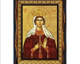Saint Olga Of Kiev Orthodox Russian Icon On Pressed Wood Etsy