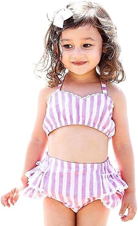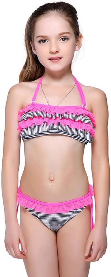 Amazon Com Bikini Banador Para Ninas Para Verano Playa A Rayas Con Encaje Traje De Bano Para Ninos 38 Clothing