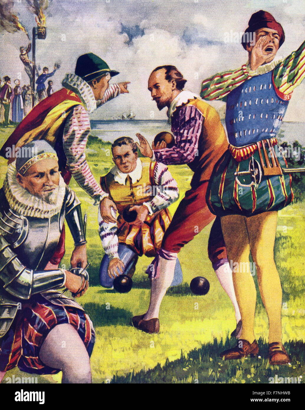 Ilustracion De Sir Francis Drake 1540 1596 Vice Almirante Fue Un Ingles Capitan De Mar Privateer Navigator Slaver Y Politico De La Epoca Isabelina Jugando Bolos Antes De La Armada Espanola Fecha Del