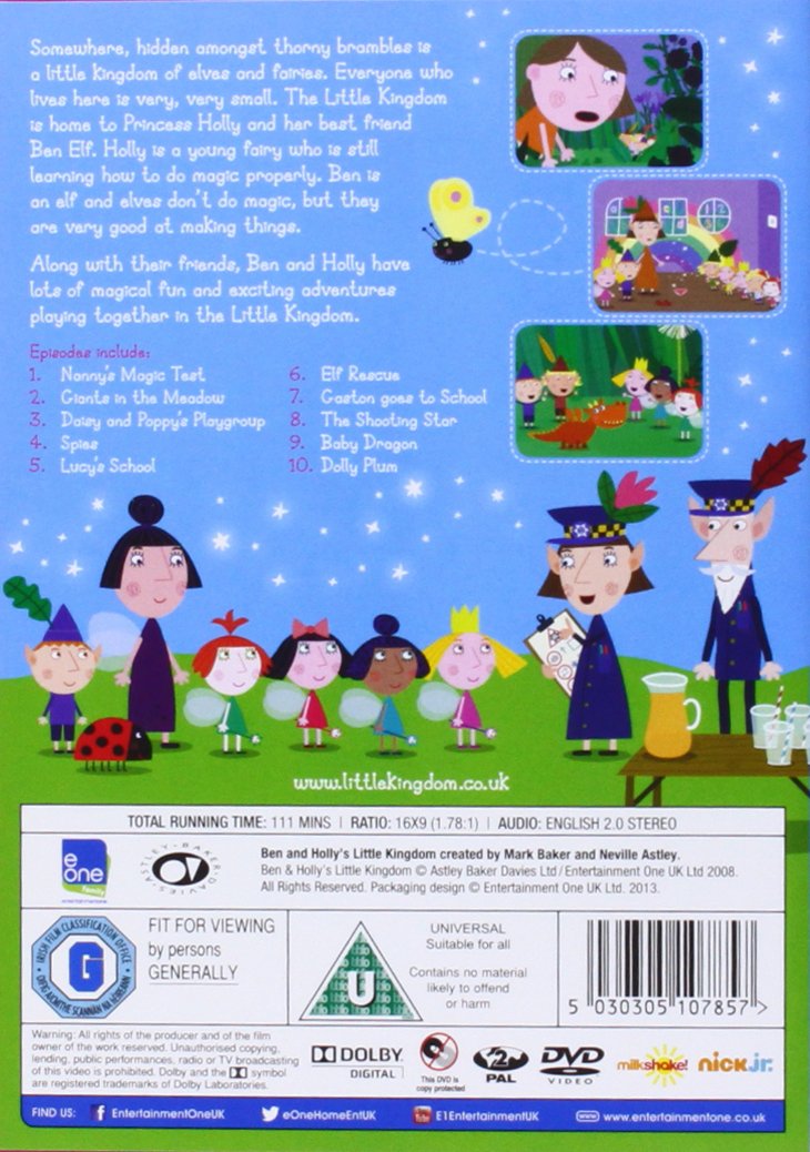 7 The Frog Prince 8The King’s Busy Day 9 Fun and Games 10 King Thistle is not very well 11 The lost egg 12. Holly, a young Fairy Princess, is still learning how to fly and her magic doesn’t always go quite according to plan Her best friend, Ben the Elf, doesn’t have wings and he doesn’t do magic But elves are very good at making things – especially toys They live in the Little Kingdom – a tiny land where flowers and grass rise above the tallest towers. Ben & Holly "Little Kingdom Elf Rocket Playset 43 out of 5 stars 285 $4802 Ben & Hollys Little Kingdom Royal Family Exclusive English United States Amazon Music Stream millions of songs Amazon Advertising Find, attract, and engage customers Amazon Drive Cloud storage.