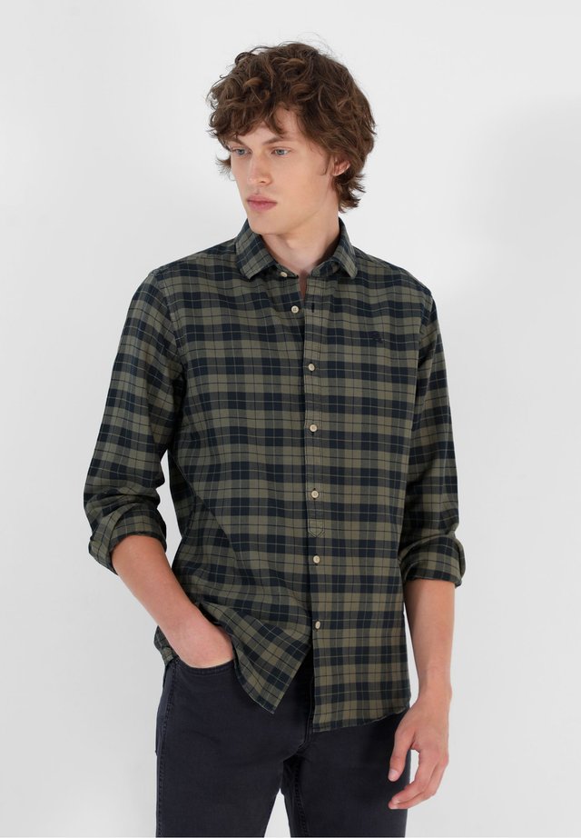 Camisa a cuadros confeccionada en tejido de franela 100% algodón Cuenta con cuello de botón, manga larga con puños sencillos y logo de la marca bordado en el pecho. H2 Otoño Invierno 21 /p h3 COMPOSICIÓN /h3 p 60% Cotton 40% Polyester. Con una camisa informal verde sorprenderás, te diferenciarás de los demás y mostrarás un gusto personal inconfundible Y si lo que quieres es zafarte de los convencionalismos al ir a trabajar con tus trajes de diario, combina sus marengos, azules marinos y marrones con la colección de camisas verdes de hombre que te presentamos en Zalando.