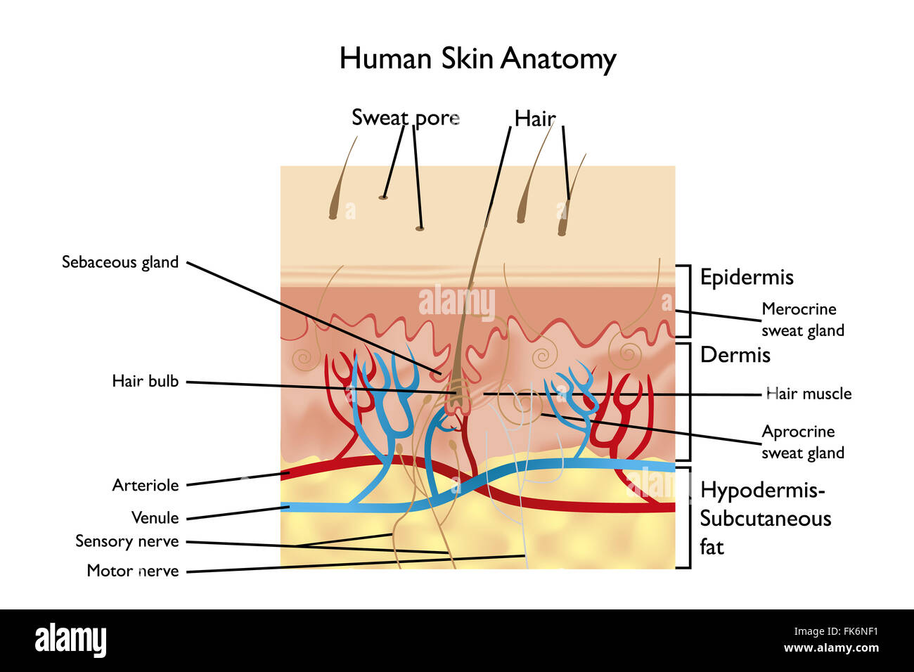 Anatomia De La Piel Humana Ilustracion Detallada Con Las Denominaciones En Ingles Fotografia De Stock Alamy