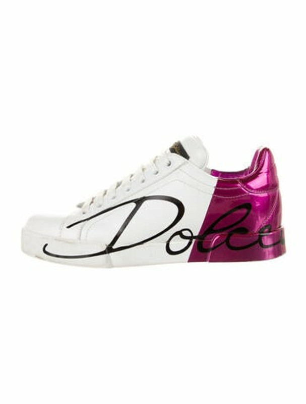 Dolce Gabbana Portofino Love Low Top Sneaker In Pink White Modesens White Leather Shoes Leather Sneakers Dolce Gabbana Sneakers
