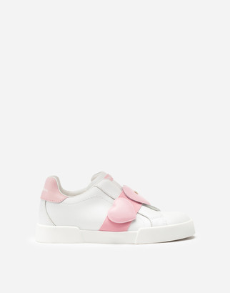 Dolce Gabbana Leather Portofino Sneakers With Metallic Heel In White Pink Modesens