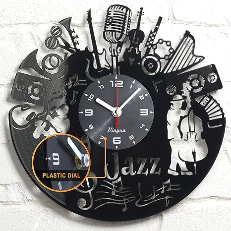 Amazon Com Reloj De Pared De Vinilo Con Musica De Jazz Para Decoracion De La Habitacion Del Hogar Con Musica Y Musica Color Negro Kitchen Dining