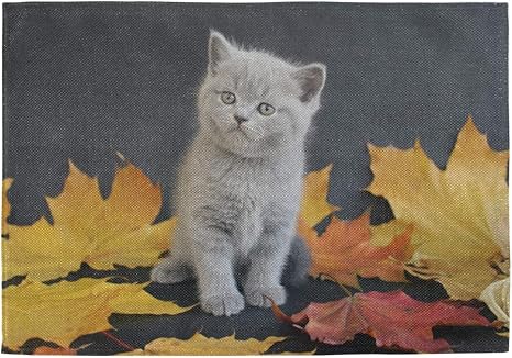 Amazon Com Xuggl Placemats Set Of 4 For Dining Table Washable British Shorthair Blue Kitten On Black Placemat Non Slip Kitchen Table Mats Home Kitchen