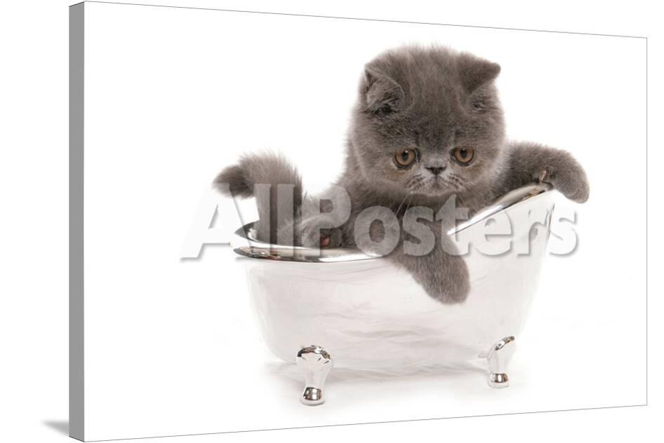 Domestic Cat Exotic Shorthair Blue Kitten Sitting In Toy Bath Photographic Print Chris Brignell Allposters Com