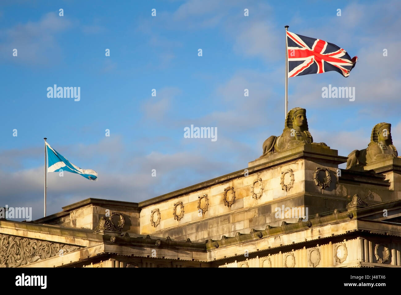 Bandera De Union Y La Bandera De Escocia En La Parte Superior De Un Edificio Edimburgo Escocia Fotografia De Stock Alamy