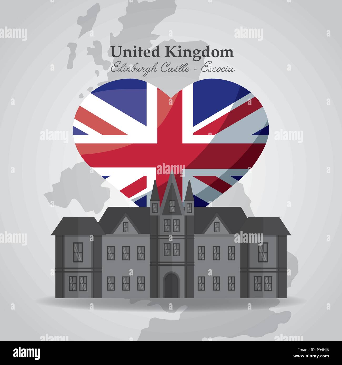Reino Unido La Bandera Del Pais Mapa De Fondo Corazon Londres Castillo De Edimburgo Escocia Ilustracion Vectorial Imagen Vector De Stock Alamy