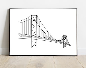 Forth Rail Bridge Edinburgh Original Continuous Single Line Ink Drawing Edinburgh Line Drawing Continuous Line