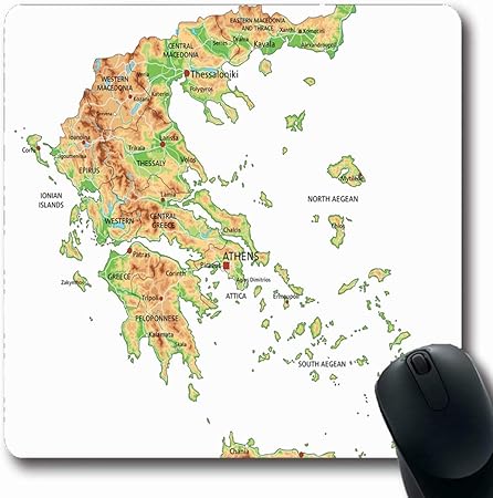 Luancrop Alfombrillas Mar Egeo Alto Detallado Grecia Mapa Fisico Etiquetado Griego Abstracto Atenas Atlantico Atlas Tierra Antideslizante Juego Alfombrilla De Raton Goma Oblong Mat Amazon Es Electronica