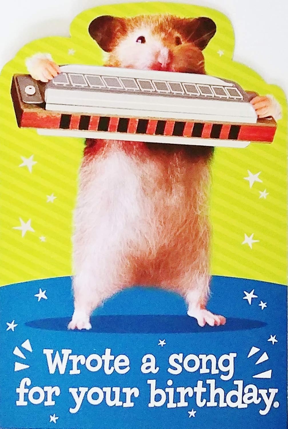 Amazon Com Wrote A Song For Your Birthday Funny Happy Birthday Greeting Card With Hamster Playing Harmonica Office Products