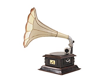 Amazon Com Antique Museum Brass Horn Vintage Hmv His Masters Voice Phonograph Antique Home Decor Music Box Wooden Turntable Square Base Gramophone A3ambg 015 Home Audio Theater