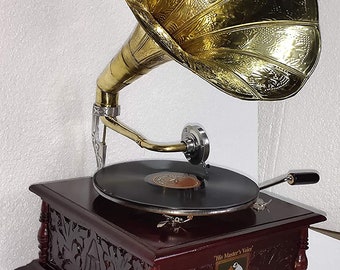 Gramophone With Brass Trumpet His Master S Voice Square Reproduction Amazon Co Uk Musical Instruments