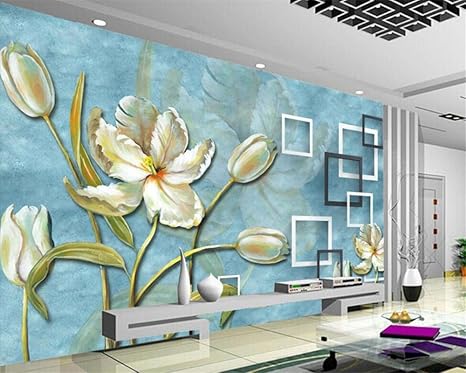 Cchpfcc Papel Tapiz Decorativo Para El Hogar Mural 3d Pintura Al Oleo Tulip Flower Tv Fondo Mural De Pared Papel Tapiz 3d Para Paredes 350x250cm Amazon Com Mx Hogar Y Cocina