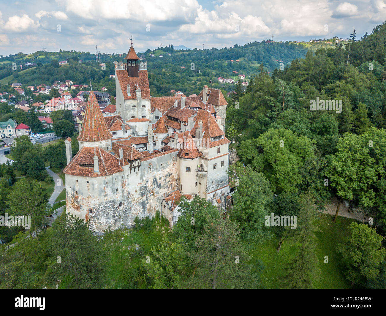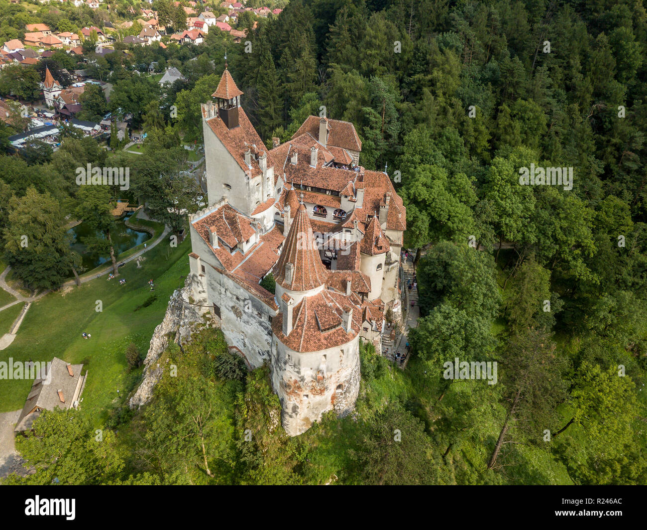 Panorama Aereo De Dracula Castillo De Bran Transilvania Rumania Ampliamente Asociada Con Vlad Tepes Cerca De Brasov Fotografia De Stock Alamy