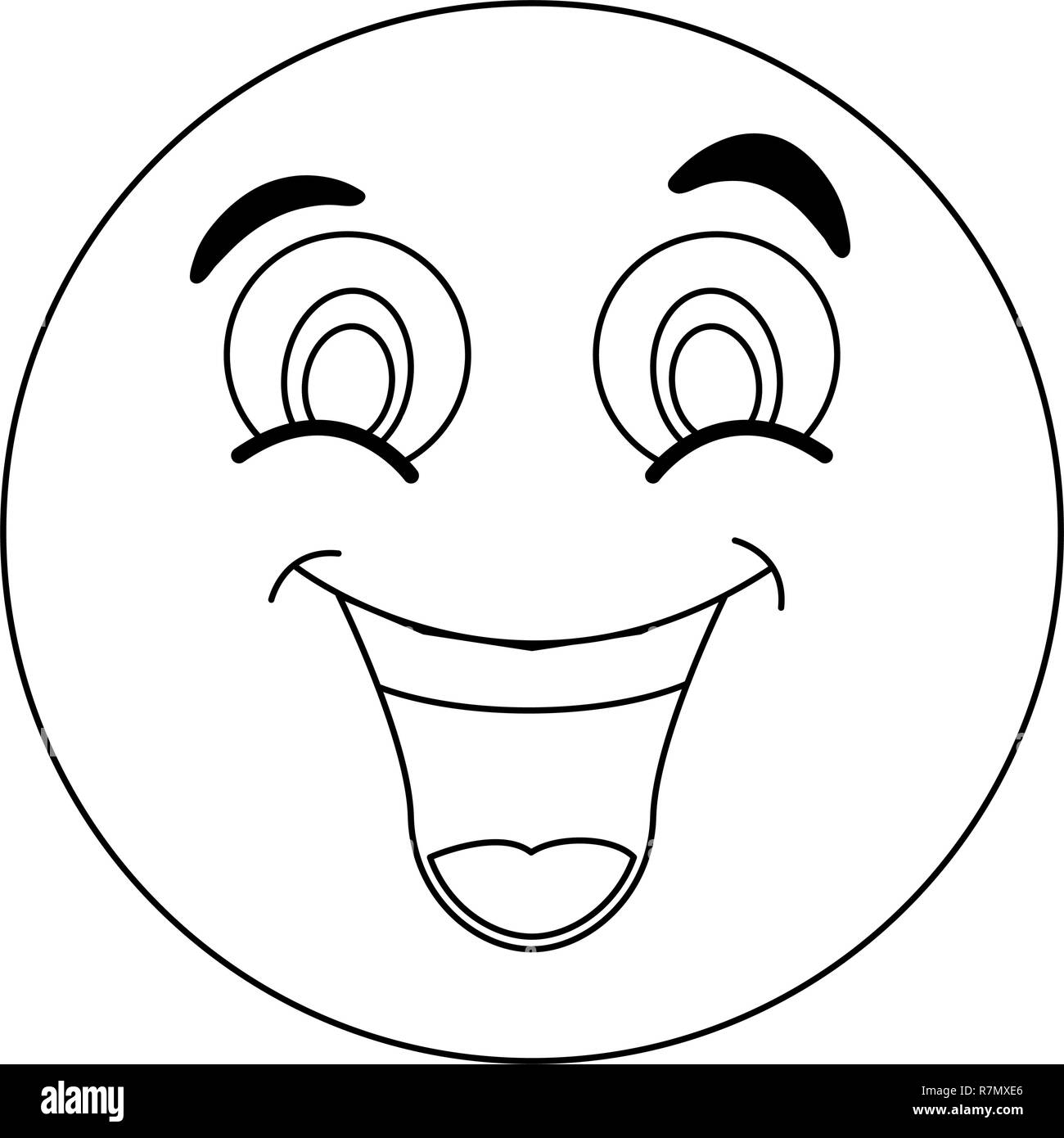 Gran Cara Sonriente Cara Feliz Ilustracion Vectorial En Blanco Y Negro Imagen Vector De Stock Alamy